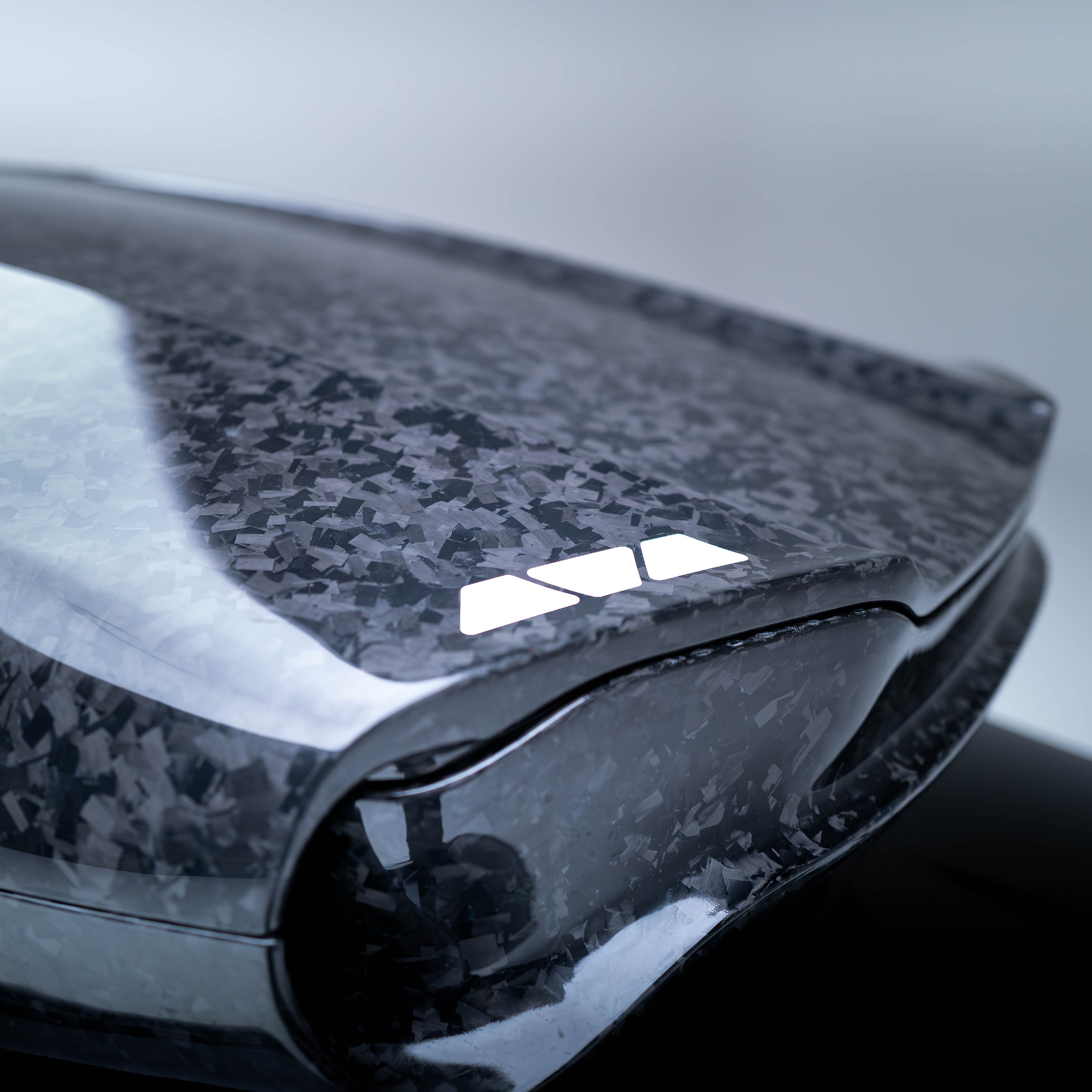 Our high gloss forged carbon explodes with depth and character, turning every angle into a statement of precision and performance.